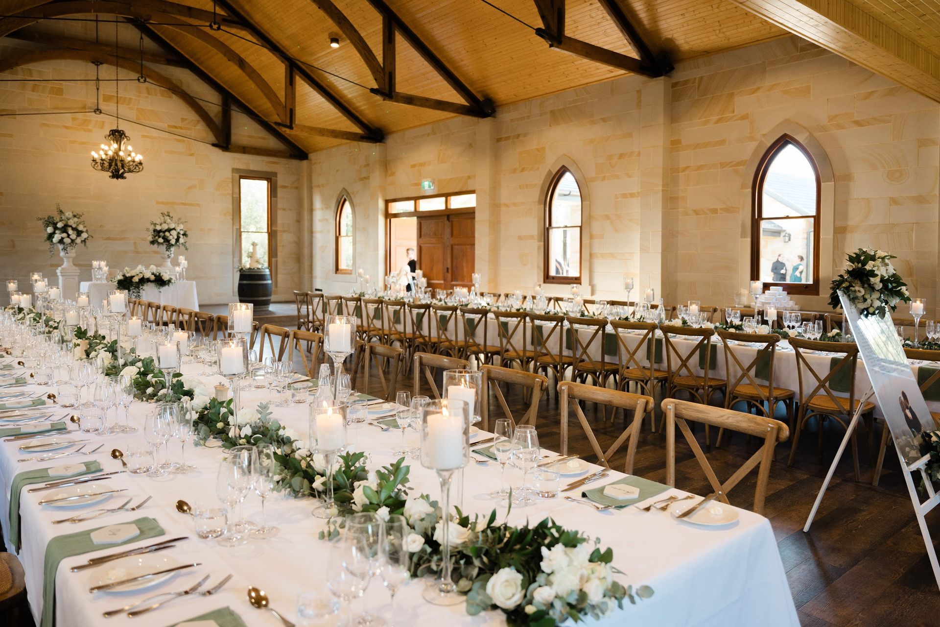 The Chapel, with its handcrafted timber trusses, sandstone blocks, and high ceilings, offers an unforgettable space with seating for over 200 guests.